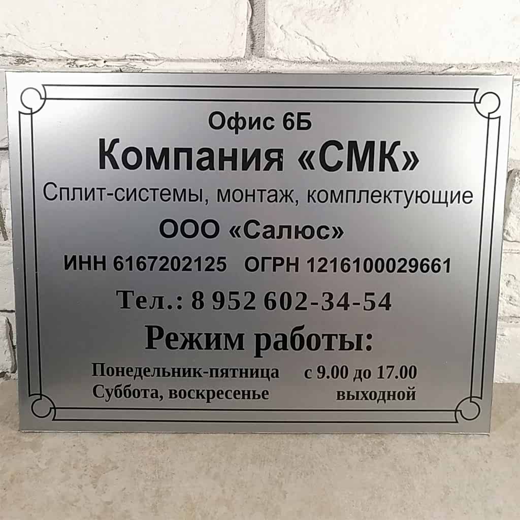 У нас вы можете заказать табличку не только на дверь в офис, но и на стену с информацией об организации, на фасад с номером дома и названием улицы, с монтажом на столб в виде таблички-указателя, на ножку, стол или любую Пинап поверхность. Здесь найдется все!