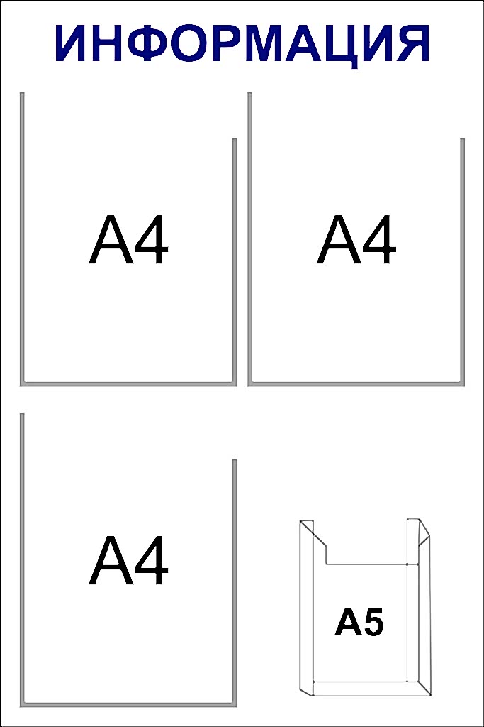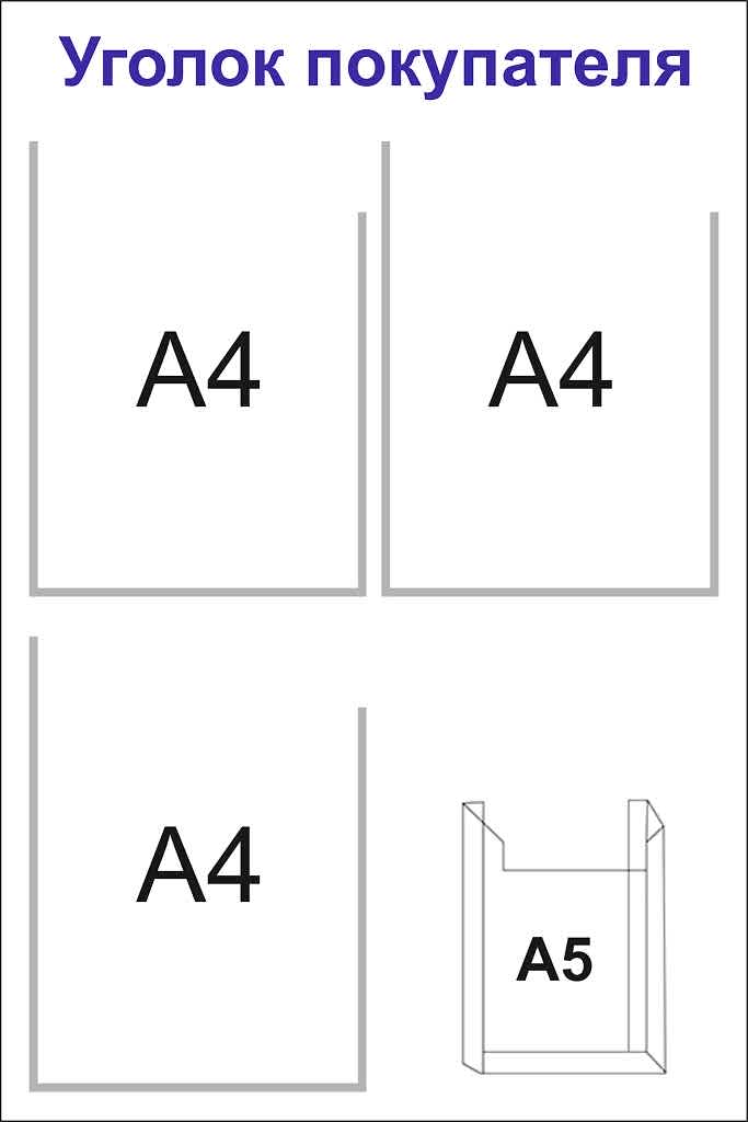Уголок потребителя 500х750мм, 3 Пинап А4 плоских, 1 объемный А5
